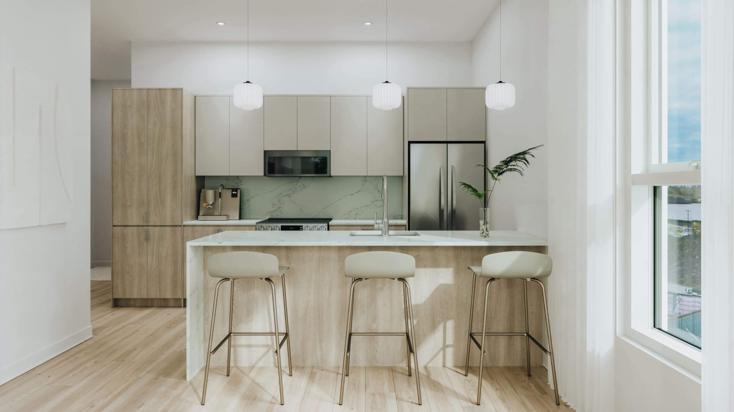 Découvrez le charme du design biophilique grâce à de grandes fenêtres qui baignent votre espace de vie de lumière naturelle tout en vous connectant harmonieusement à l’extérieur. Chaque logement est soigneusement conçu pour votre confort et votre bien-être, avec des fenêtres à triple vitrage certifiées Energy Star offrant une isolation exceptionnelle, une insonorisation optimale et des performances thermiques tout au long de l’année.