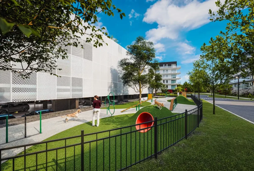- Grand parc pour chiens, exclusif aux résidents et entièrement équipé